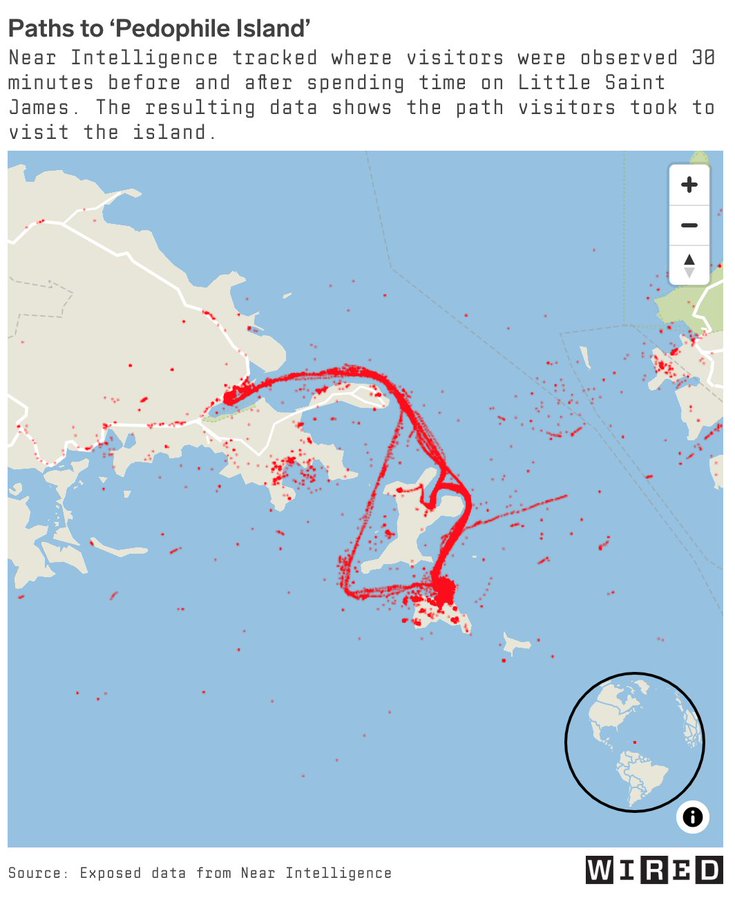 Los mapas de Near Intelligence de la isla de Epstein revelan con todo detalle