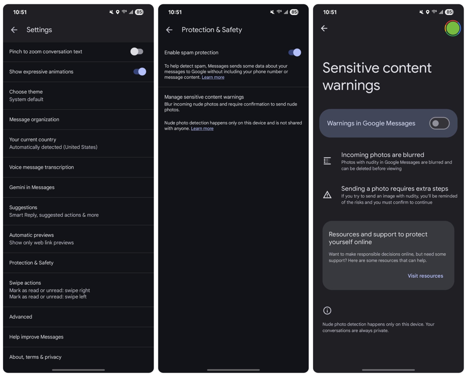 «Google Messages está implementando advertencias de contenido sensible que