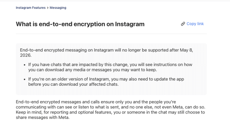 Instagram desactivará el soporte de chat cifrado de extremo a extremo a partir de mayo de 2026 ~ Segu-Info