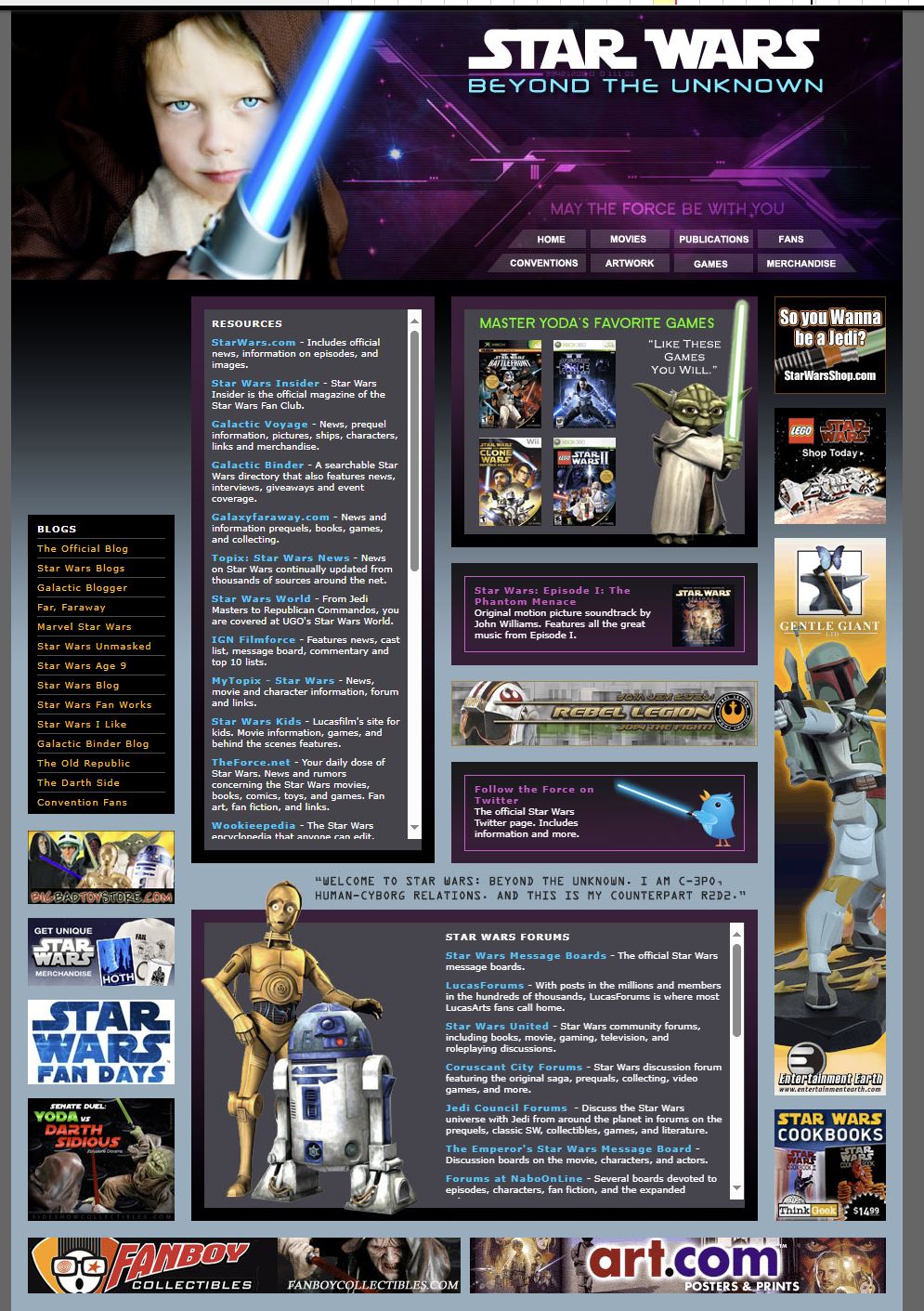 La página incluye los juegos favoritos del Maestro Yoda para Wii y Xbox 360,