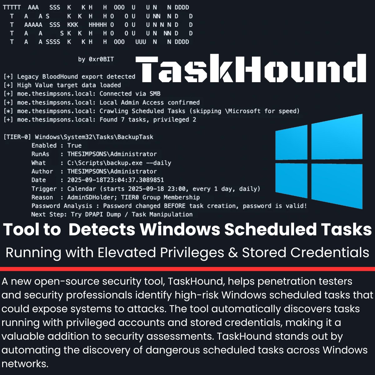 TaskHound: detecta tareas programadas de Windows que se ejecutan con privilegios elevados y credenciales almacenadas. ~ Segu-Info