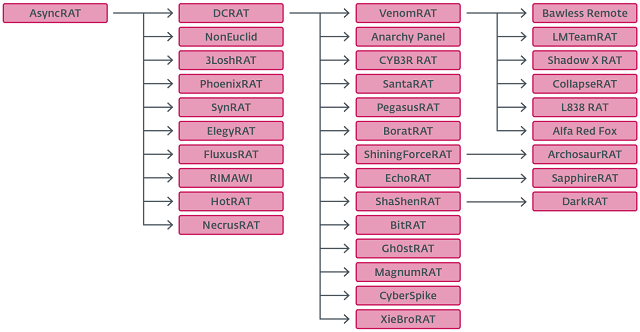 lanzamiento de AsyncRAT, el malware ha generado diversas variantes, como